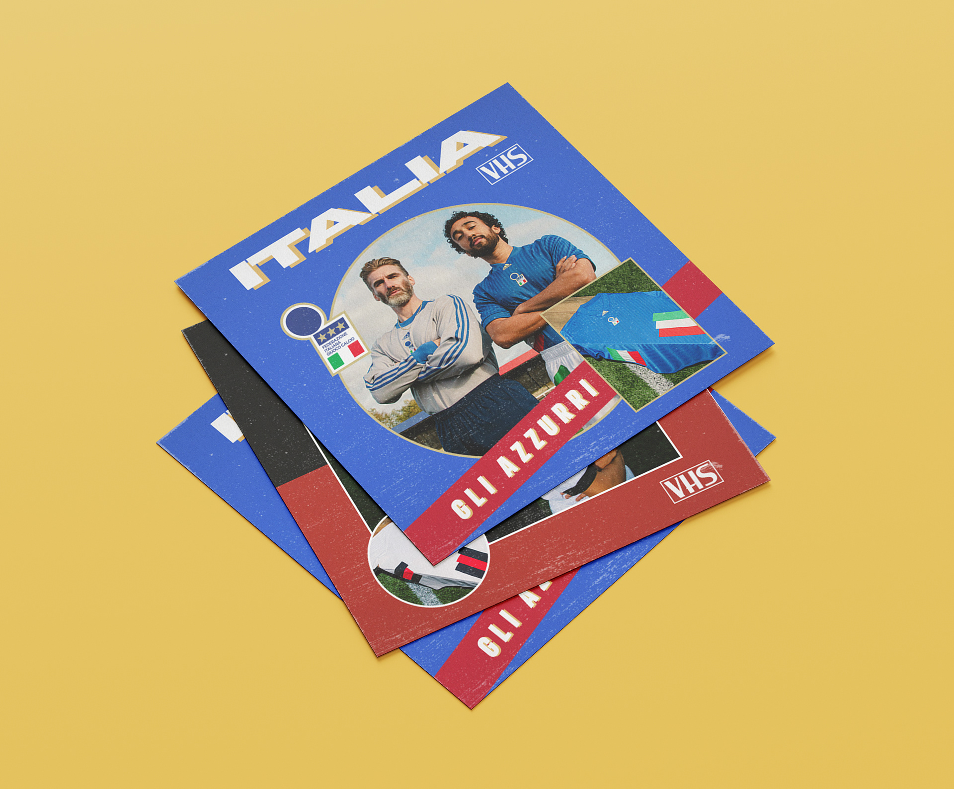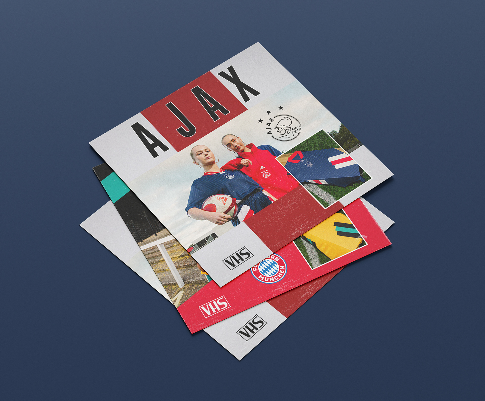 The Football Icons project takes inspiration from the analogue aesthetic of old VHS tapes, reimagined for the digital age and adapted into e-commerce assets. With 90s football culture at the forefront of fan identity today, the creative approach taps into nostalgia while aligning with contemporary consumer demand.